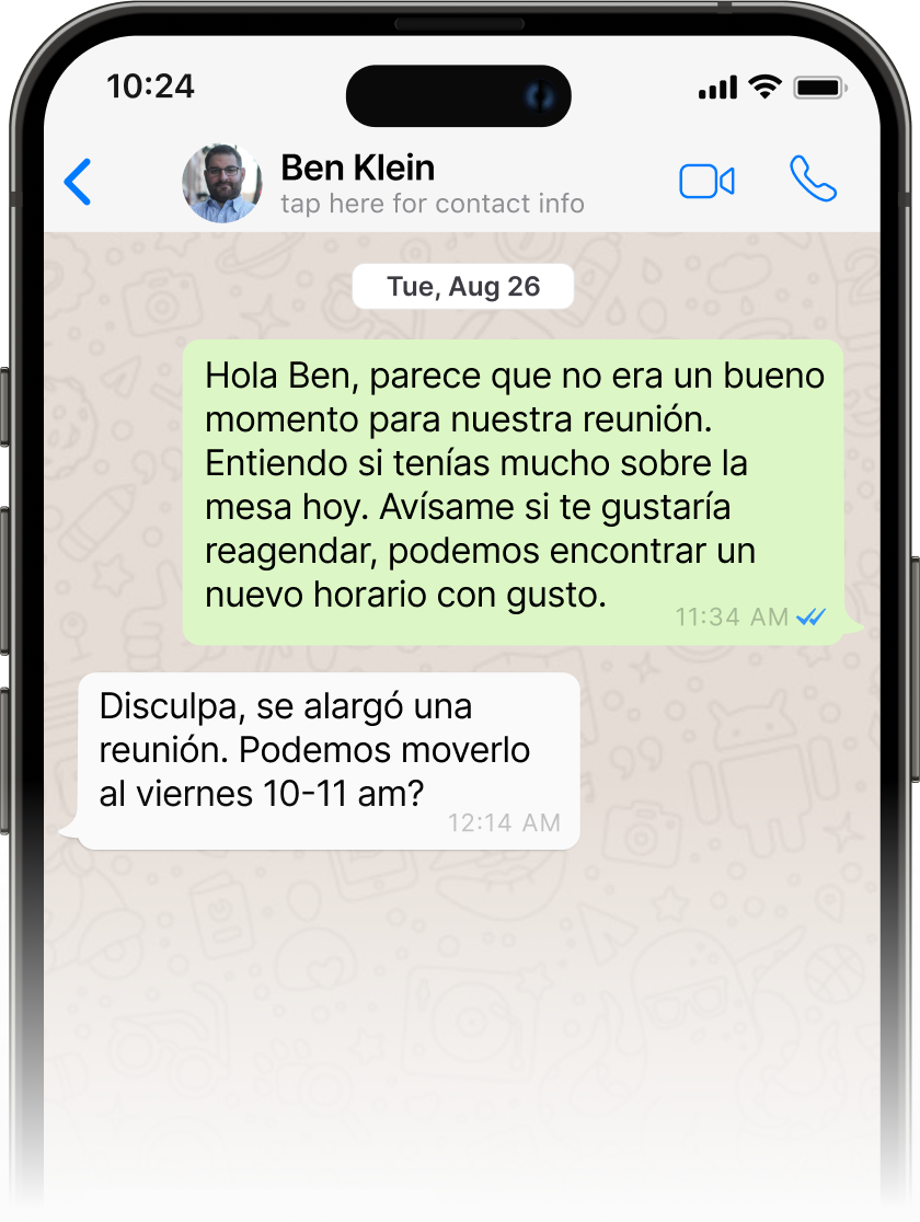 Un Whatsapp casual te permite re-agendar de manera fácil y natural.