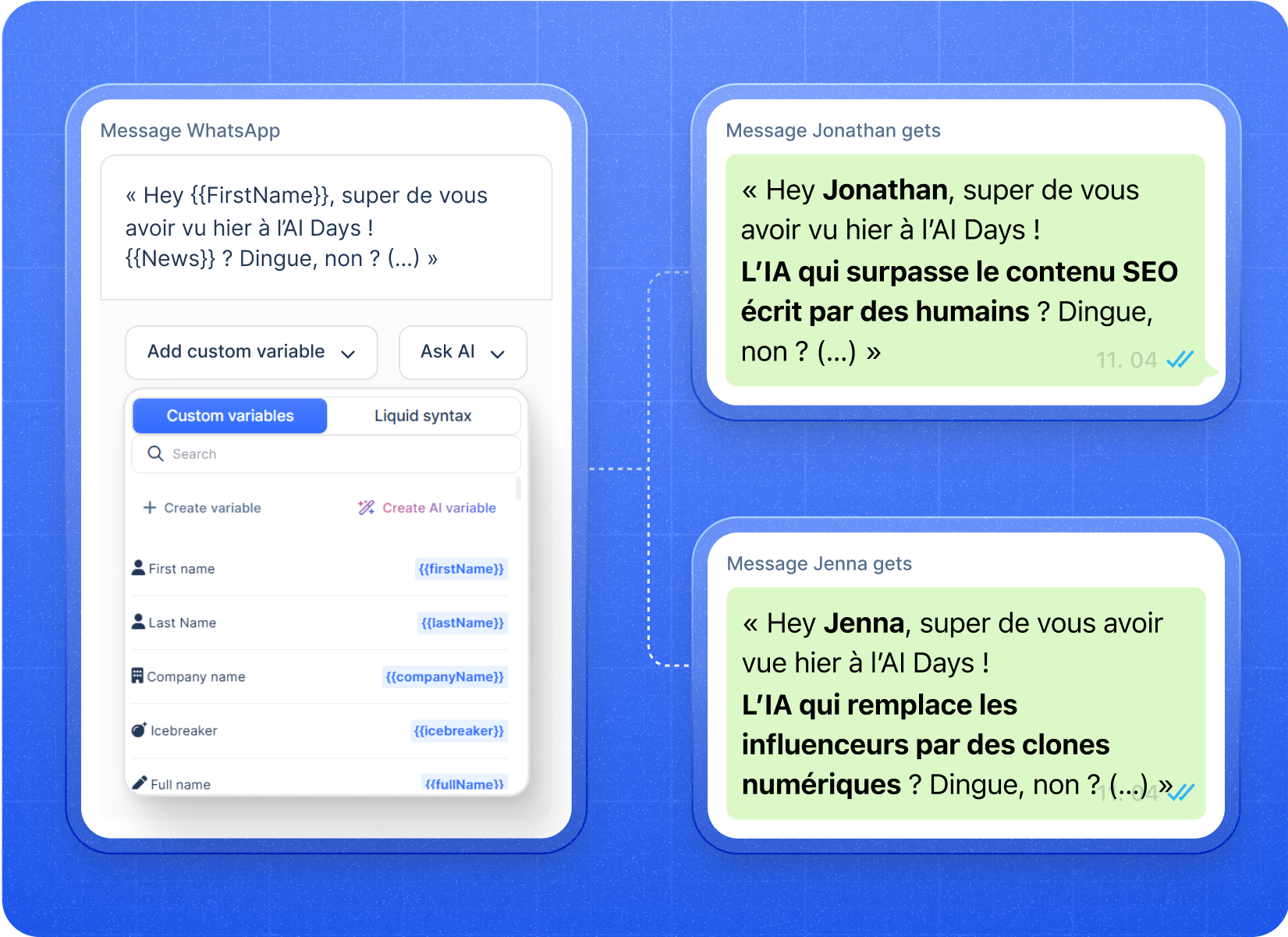Les numéros personnels vous offrent plus de flexibilité : vous pouvez commencer à envoyer des messages immédiatement, sans attendre la validation de modèles ni passer par une configuration complexe. Tant que vous respectez les règles de Meta — en contactant uniquement des personnes pertinentes avec du contenu adapté — vous pouvez développer votre prospection de manière plus fluide et moins rigide qu’avec des comptes professionnels.
